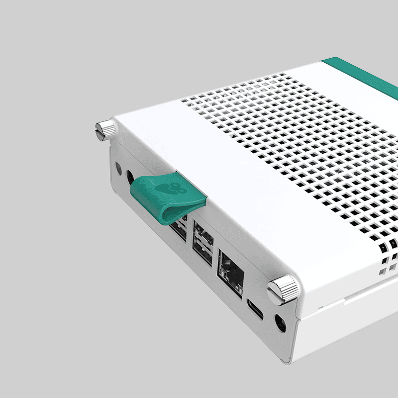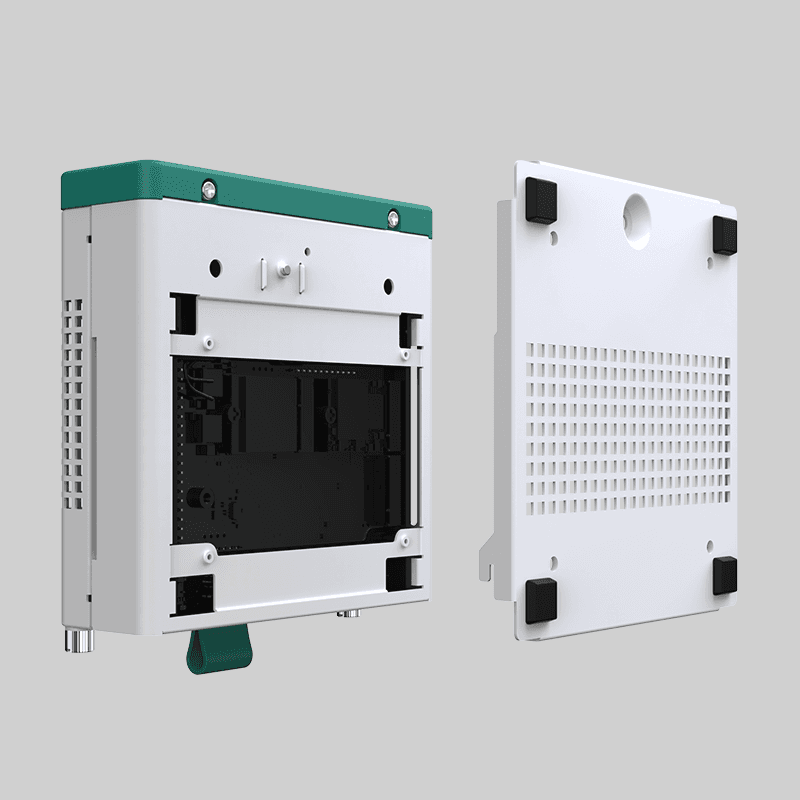 僅移除兩個手擰螺絲,拉住把手便能打開機殼