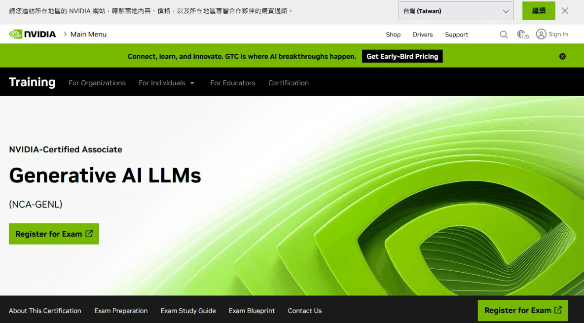 前往 NVIDIA 官方認證頁面,找到「NVIDIA-Certified Associate:Generative AI LLMs 」認證考試。網址: https://www.nvidia.com/en-us/learn/certification/generative-ai-llm-associate/