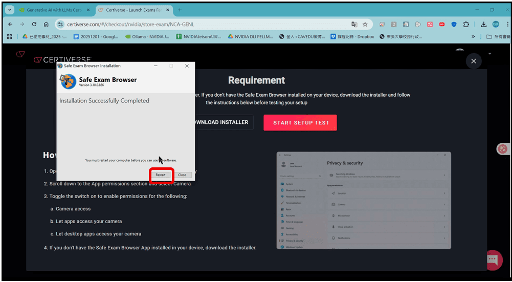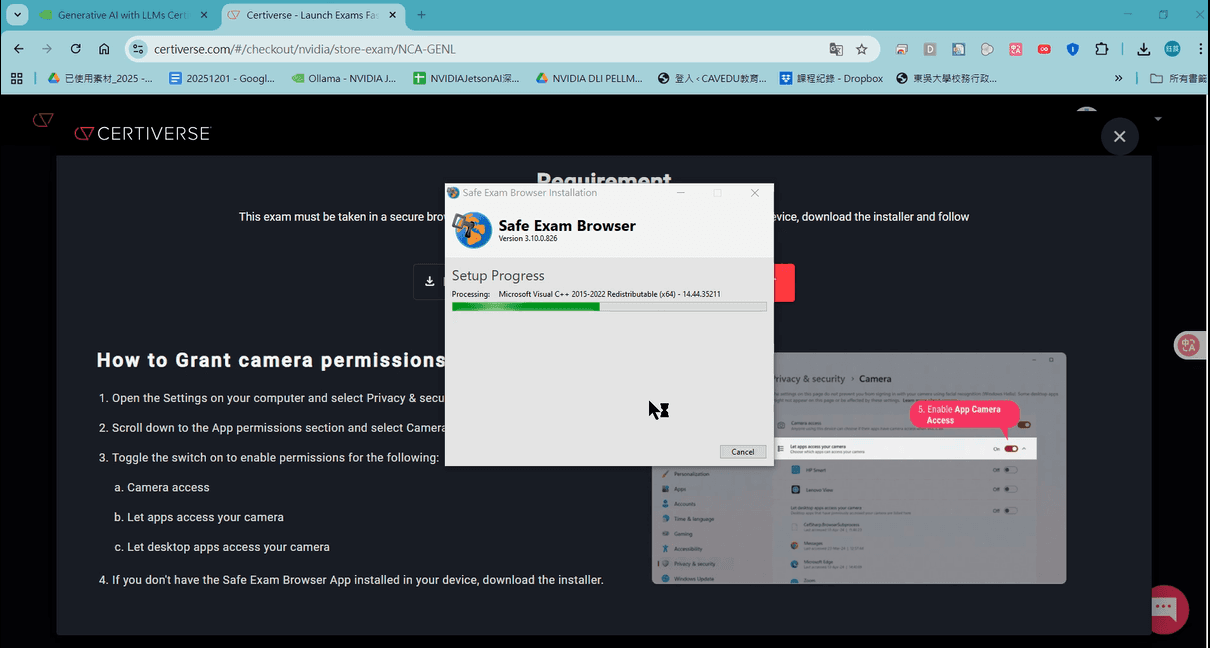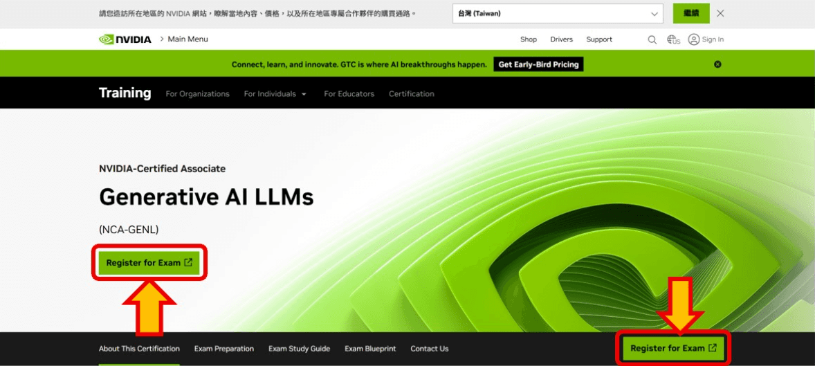 本文將說明報名 NVIDIA-Certified Associate:Generative AI LLMs 這張能力認證的過程,分成線上監考系統測試,及確認考試日期及付款頁面,請依照以下步驟操作。