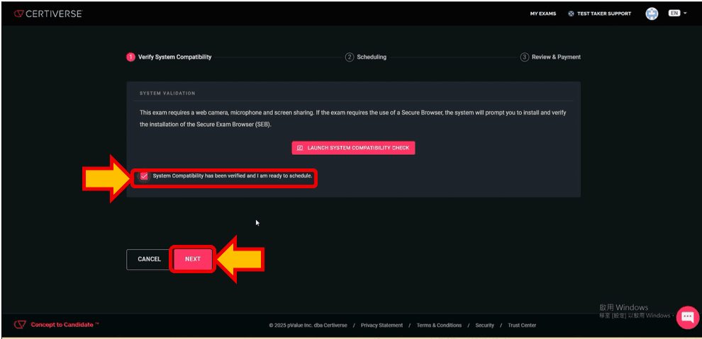 17.再來勾選「System Compatibility has been verified and I am ready to schedule.」再按下「NEXT」