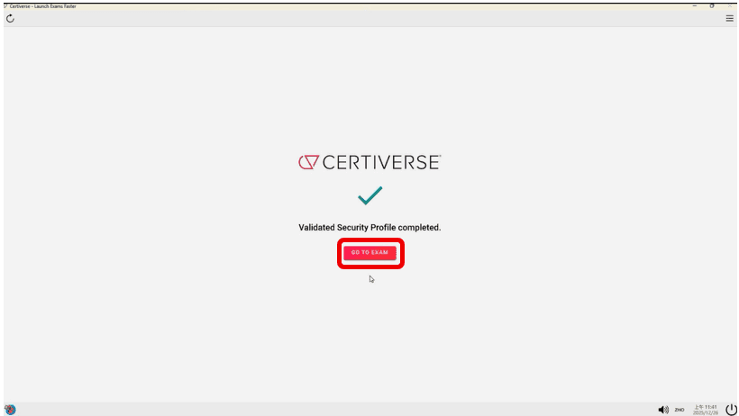 再來網頁跳轉後會顯示「Validated Security Profile completed.」,請點選紅色按鈕「GO TO EXAM」