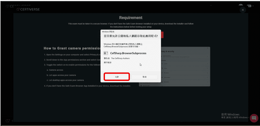 15.出現Windows 安全性,點選「允許」
